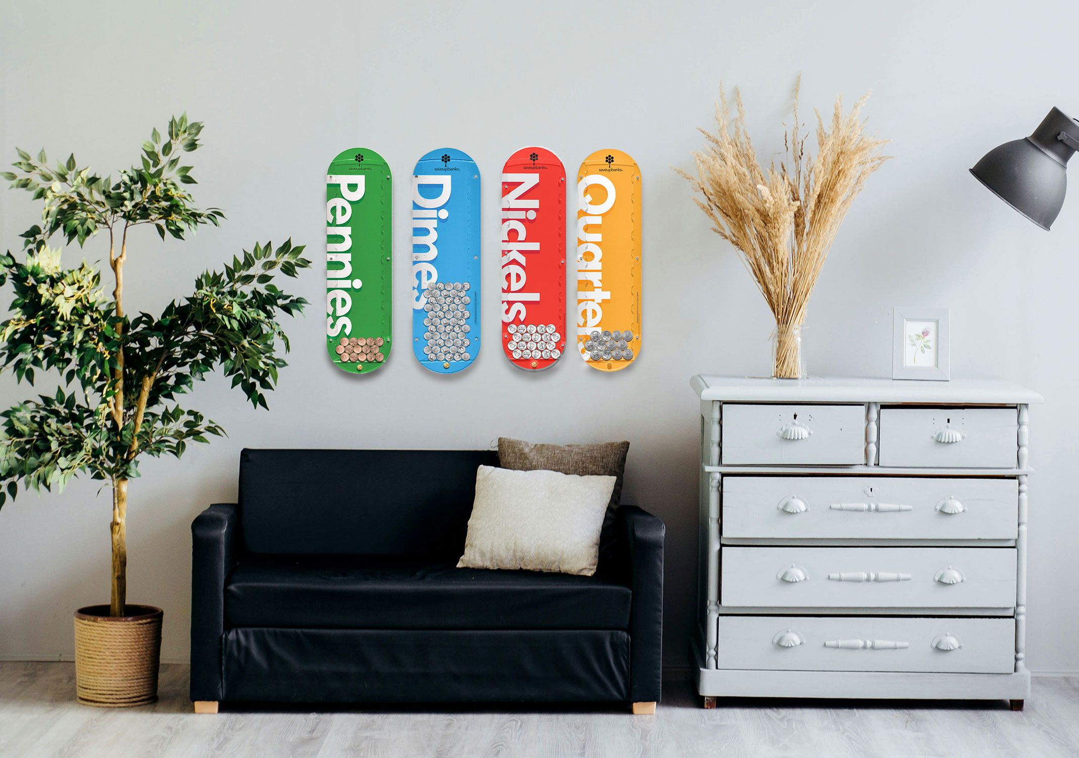 Save Up Banks. Unlike traditional piggy banks, bring the experience to a new level of presentation and learning. SaveUp® Banks are colorful and beautifully designed. Bold and prominently visible, displaying coins vertically making it easy to view and count. A new way to save money. SaveUp the money that jingles and transform it into new money that folds. Remember, every coin counts.